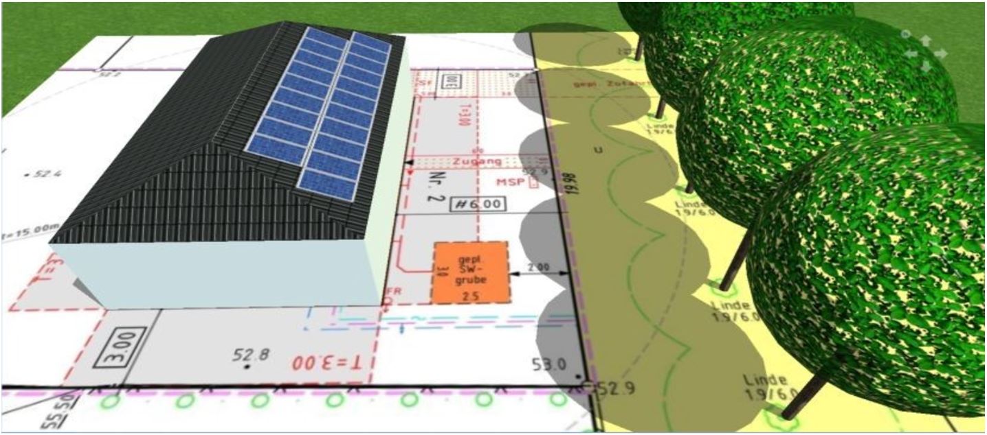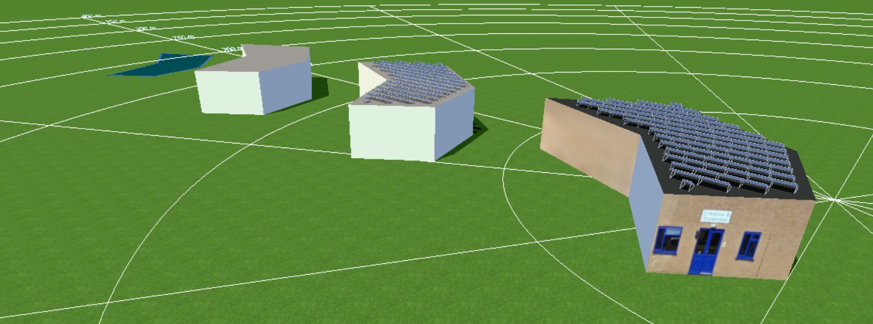 Široká variace přizpůsobení 3D objektů umístitelných na střechu pro predikci zastínění a plánování umístění modulů.