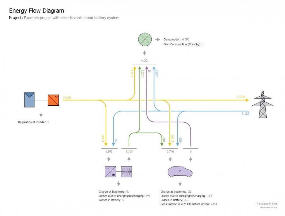 Funkčnost systému může být snadno kontrolována pomocí vizualizace nejdůležitějších teplot systému během simulace. Různé výsledky po simulaci zahrnují toky energie a systémové teploty v šestiminutovém rozlišení, které mohou být zobrazeny jak graficky tak v tabulce.