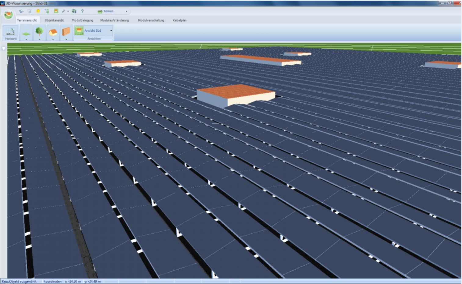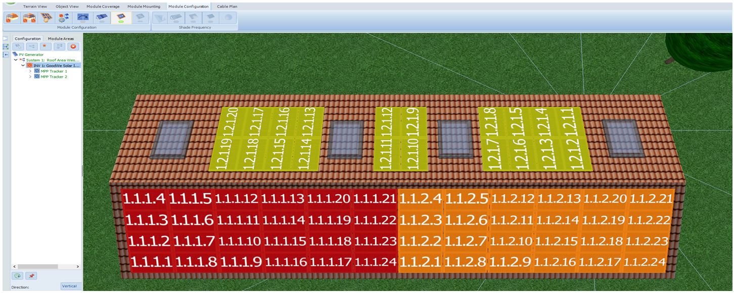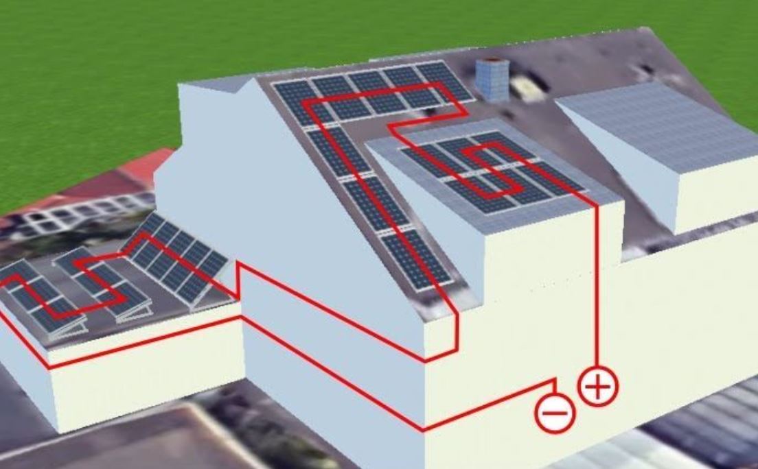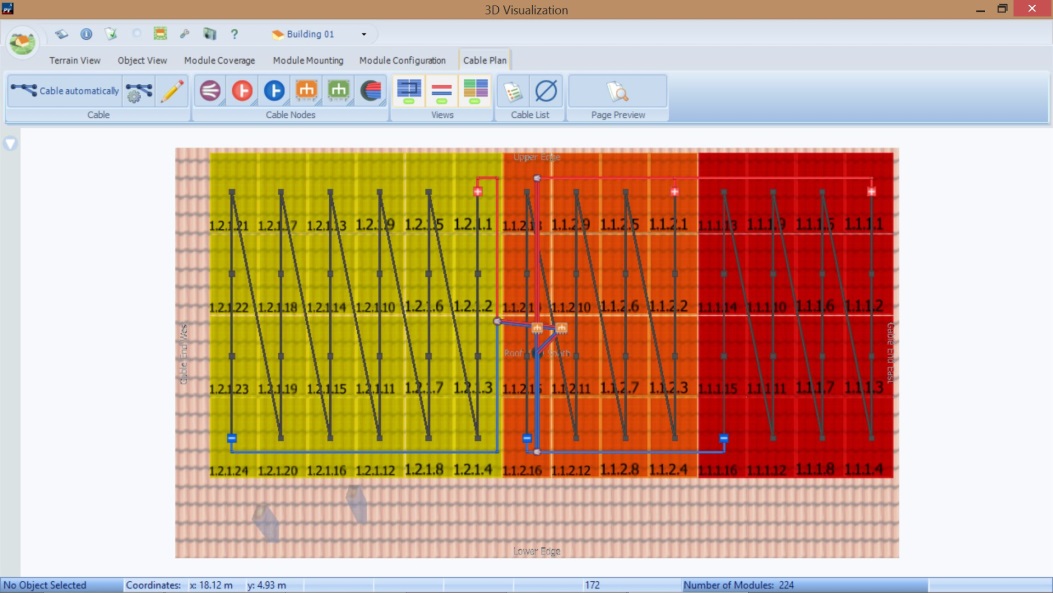 Pro panely montované paralelně s rovinou střechy, umožňuje kabelový plán automatický nebo manuální on-screen (přímo na monitoru) návrh prostřednictvím kabelového editoru (cable-cutting list), kde jsou k dispozici volby délky a průměru vodiče. Kabelové cesty jsou navženy s ohledem na zvolenou konfigurací střídače.
