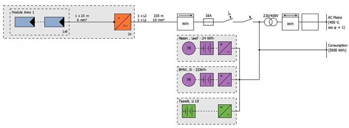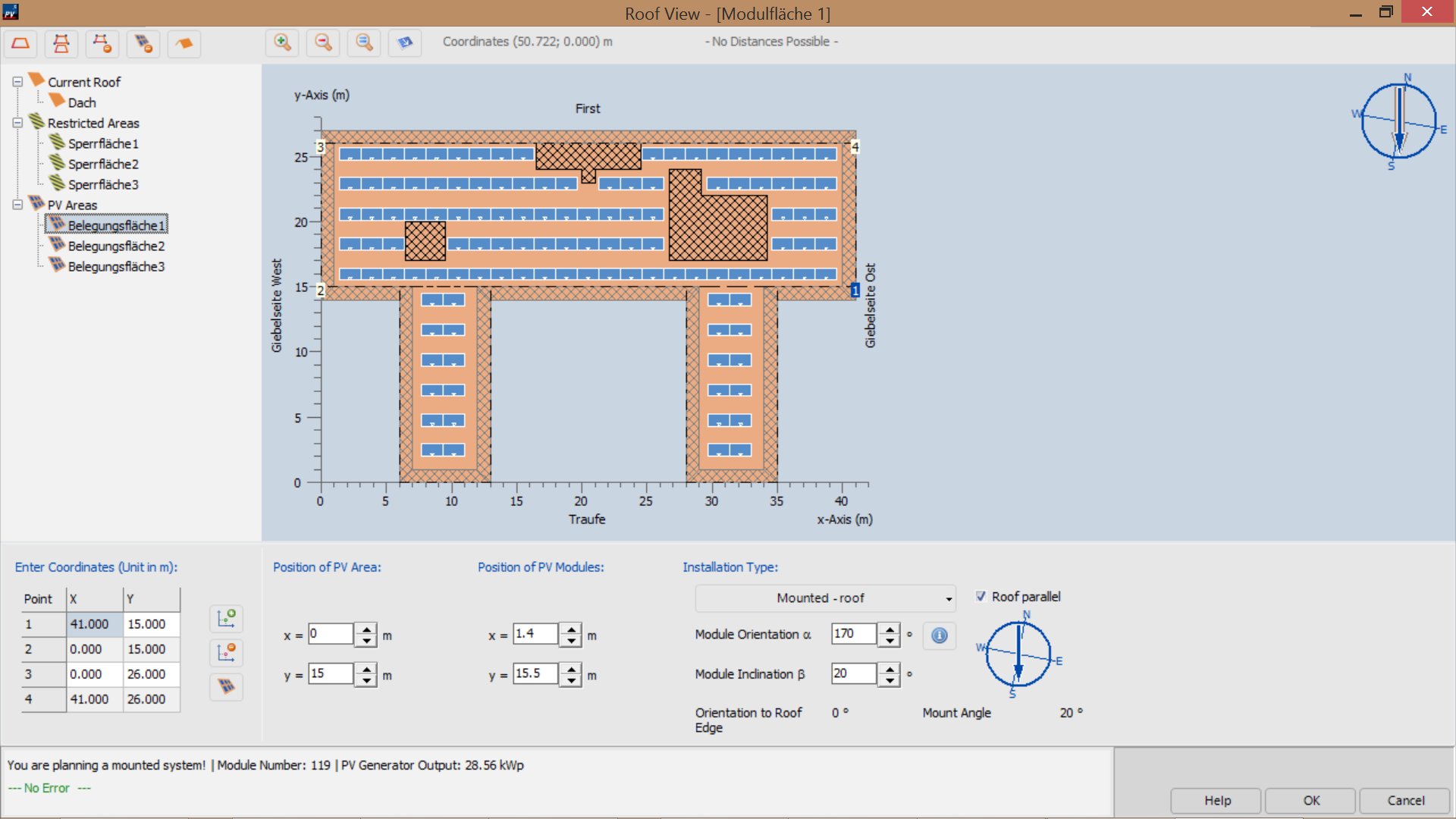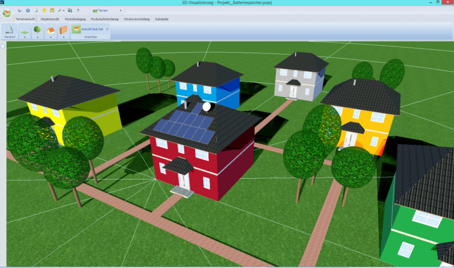 Pro panely montované paralelně s rovinou střechy, umožňuje kabelový plán automatický nebo manuální on-screen (přímo na monitoru) návrh prostřednictvím kabelového editoru (cable-cutting list), kde jsou k dispozici volby délky a průměru vodiče. Kabelové cesty jsou navženy s ohledem na zvolenou konfigurací střídače.