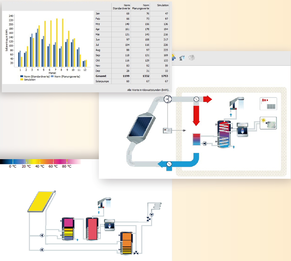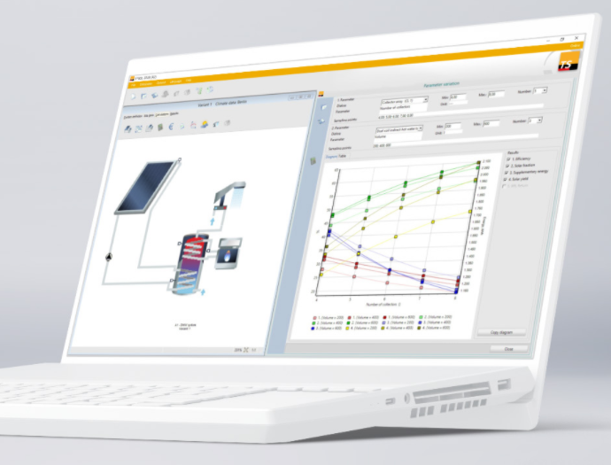 T*SOL®, program pro návrh solárních termických systémů používaný ve více jak 90 zemích světa. Variace parametrů umožňuje provedení více simulací, které mohou být spuštěny paralelně, aby bylo možné nalézt optimální parametry systému (jako je plocha kolektorů a objem zásobníku).