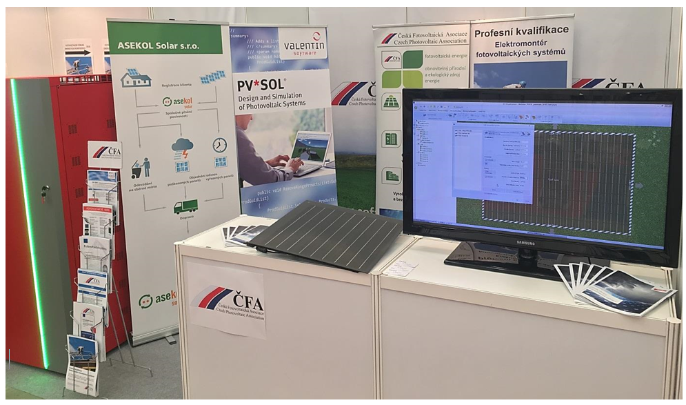 Od středy 19.9.2018 do soboty 22.9.2018 měli možnost členové ČFA zdarma navštívit mezinárodní stavební veletrh FOR ARCH 2018 na výstavišti PVA Letňany. Stánek České fotovoltaická asociace byl umístěn v hale 7, pod č. 7D03 a po celou dobu zde fungovalo energeticko-fotovoltaické poradenské centrum.