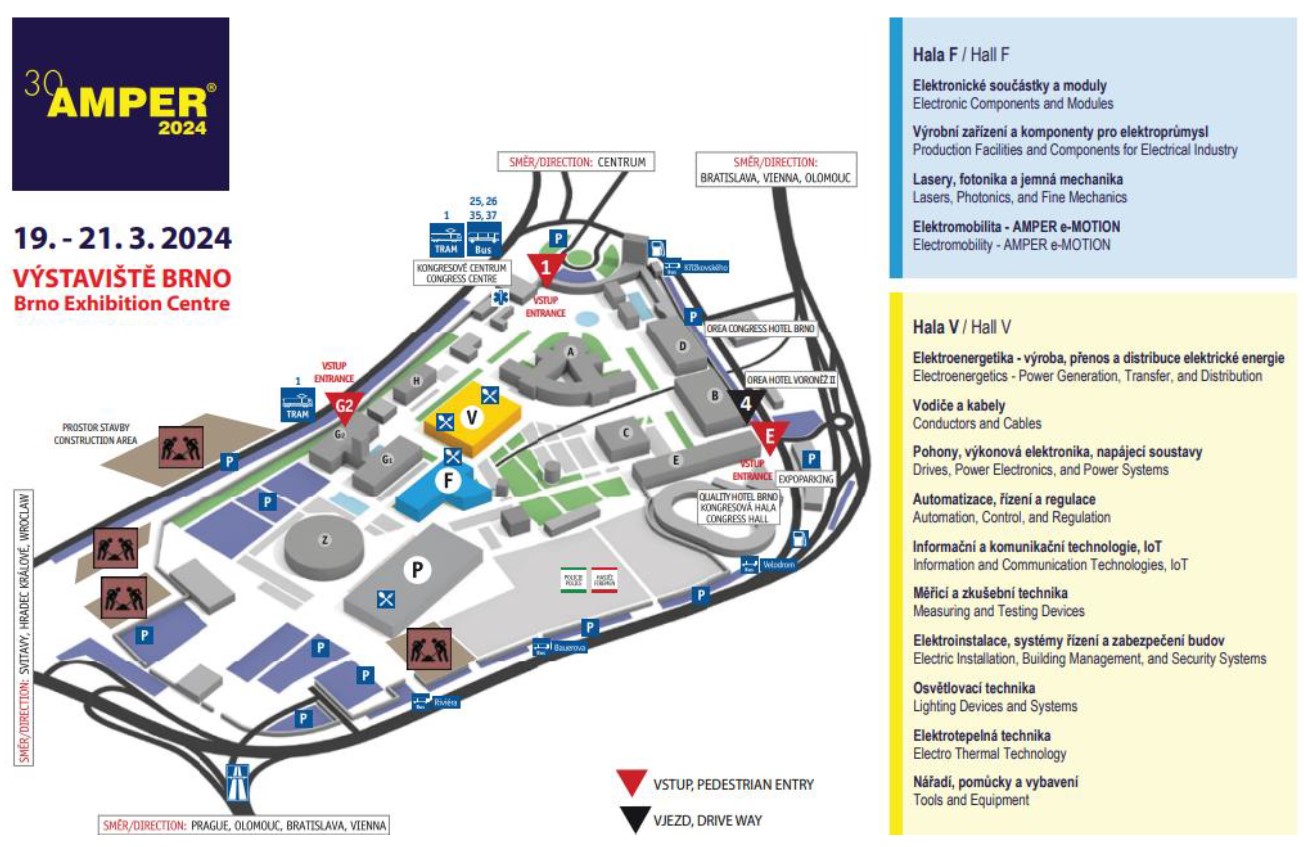 Z důvodu prováděných stavebních prací nebude tentokráte stánek a přednášky umístěné do haly P, ale pro rok 2024 je veletrh AMPÉR v hale F a V. Jediné co budete ke vstupu potřebovat je vstupenka na veletrh nebo můžete použít členského voucheru – viz. Článek AMPÉR 2024 je za dveřmi.