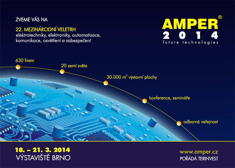 Společnost TERINVEST bude v termínu od 18. do 21. března 2014 pořádat na půdě brněnského výstaviště tradiční veletrh AMPER, jednu z největších technických událostí roku u nás. O pozornost návštěvníků veletrhu bude bojovat zhruba 630 vystavovatelů z 20 zemí světa.