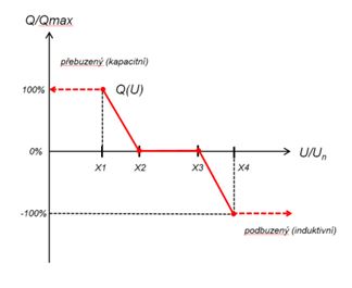 Dále v bodě 9 nově zavádí povinnost i u mikrozdrojů provádět kompenzaci účiníku a hodnota účiníku může být PDS nově nastavena podle funkce Q(U) – viz. graf.